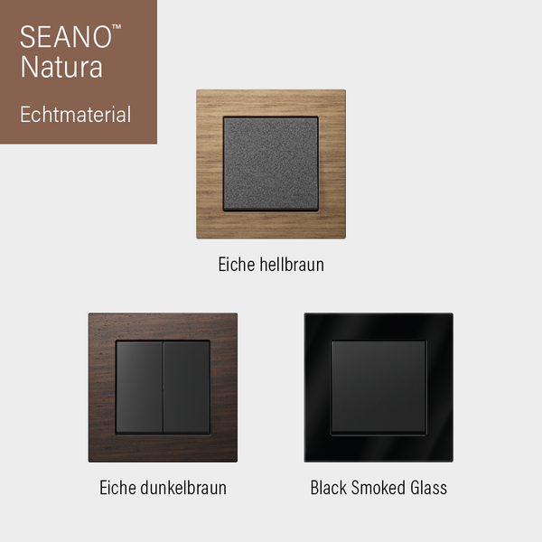 Die neue Schalterserie SEANO™ von Legrand ist maßgeschneidert für den deutschen und österreichischen Markt, auf eine mühelose Installation optimiert und nachhaltig produziert. Die drei Designlinien SEANO™, SEANO™+ und SEANO™ Natura decken neben konventioneller auch eine Smart Home-Installation ab. Das geradlinige SEANO™-Design bietet bereits im preislichen Einstiegssegment eine hohe Produktqualität und zeitgemäße Auswahl. SEANO™+ und SEANO™ Natura können mit einer besonders großen Vielfalt in Luxusqualität aufwarten. Im Mittelpunkt der edlen Reihen SEANO™ Natura stehen die hochwertigen Echtmaterialien White Glass und Black Smoked Glass, Aluminium sowie helle und dunkle Eiche.​